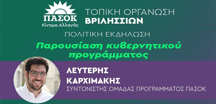 ΠΑΣΟΚ Βριλησσίων: Παρουσίαση κυβερνητικού προγράμματος – Μπροστά σε νέες προκλήσεις – Ώρα για νέες λύσεις!