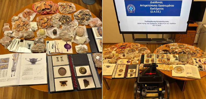 Από την Υποδιεύθυνση Καταπολέμησης Διακίνησης και Εμπορίας Ανθρώπων και Αγαθών της Διεύθυνσης Αντιμετώπισης Οργανωμένου Εγκλήματος συνελήφθη πρωινές ώρες χθες, Τετάρτη 19 Νοεμβρίου 2025, ημεδαπός, ο οποίος είχε στην κατοχή του αρχαία αντικείμενα και θρησκευτικές εικόνες.