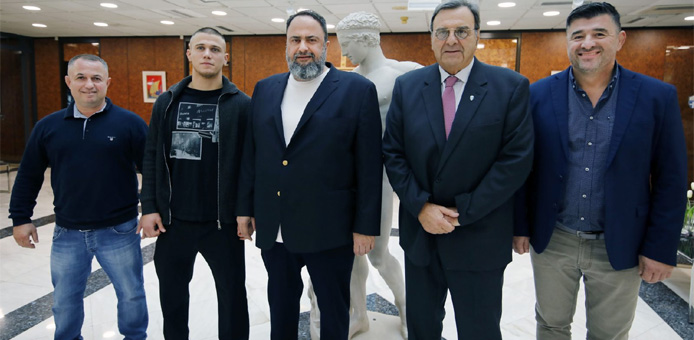 Στη συνάντηση παραβρέθηκαν επίσης ο προπονητής του Γιώργου Κουγιουμτσίδη, Θέμης Ιακωβίδης και ο Γενικός Γραμματέας της Ομοσπονδίας Πάλης, Κώστας Θάνος.