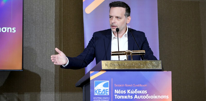 Τέλος σημείωσε ότι ο νέος Κώδικας, παρότι αποτελεί πολύ θετικό και αναγκαίο πρώτο βήμα εκσυγχρονισμού, δεν συνιστά από μόνος του τη συνολική Διοικητική Μεταρρύθμιση που επιτάσσει το Σύνταγμα και διεκδικεί η Τοπική Αυτοδιοίκηση. Στο πλαίσιο αυτό, επανέλαβε την ανάγκη για ρυθμίσεις που αφορούν την αποκατάσταση των Κεντρικών Αυτοτελών Πόρων, τη στελέχωση των Δήμων, τη στήριξη των μικρών ορεινών και νησιωτικών Δήμων και τη διακυβέρνηση των διαδημοτικών αρμοδιοτήτων στις μητροπολιτικές περιοχές.