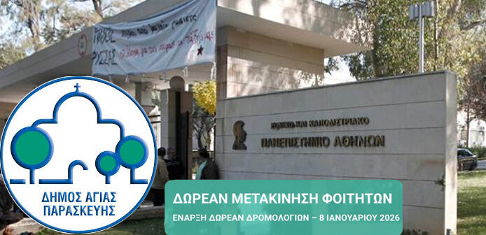 Ο Δήμος Αγίας Παρασκευής με την Δ/νση Παιδείας Πολιτισμού & Αθλητισμού, στο πλαίσιο της κοινωνικής του πολιτικής, ξεκινά σήμερα 8 Ιανουαρίου 2026 , το πρόγραμμα δωρεάν μετακινήσεων των φοιτητών, κατοίκων της πόλης, στην Πανεπιστημιούπολη Ζωγράφου.
