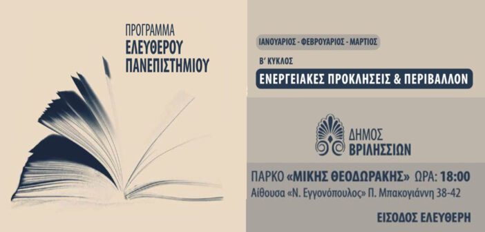 Οι διαλέξεις θα πραγματοποιούνται στο Πάρκο “Μίκης Θεοδωράκης”, στην Αίθουσα «Ν. Εγγονόπουλος», Π. Μπακογιάννη 38-42, Βριλήσσια, με ώρα έναρξης 18:00.