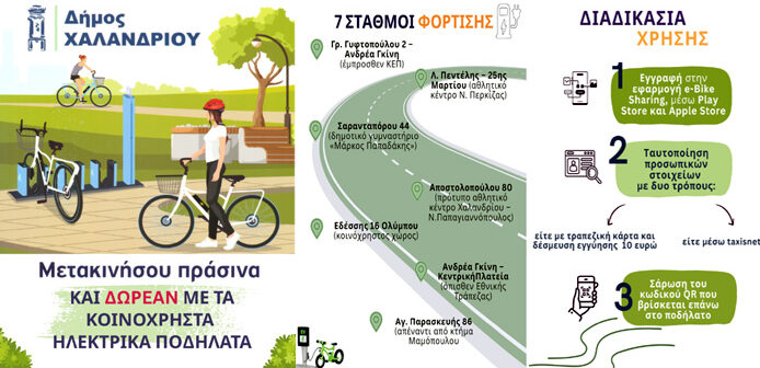 Ξεκίνησε η πιλοτική εφαρμογή του προγράμματος δωρεάν κοινόχρηστων ηλεκτρικών ποδηλάτων του Δήμου Χαλανδρίου.