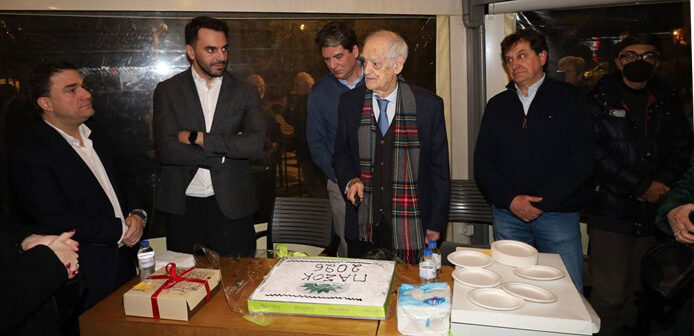 Τέλος ο Πρόεδρος κ. Κακλαμάνης κλήθηκε τιμητικά να κόψει την πρωτοχρονιάτική πίτα.
