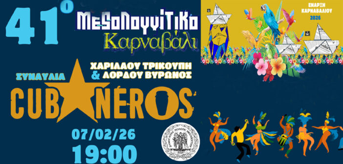 Η αυλαία των φετινών εκδηλώσεων ανοίγει το Σάββατο 7 Φεβρουαρίου 2026, στις 19:00, στη συμβολή των οδών Χαριλάου Τρικούπη & Λόρδου Βύρωνος, με μια δυναμική συναυλία των Cubaneros, που θα ξεσηκώσει το κοινό με ρυθμούς και χορευτική ενέργεια.