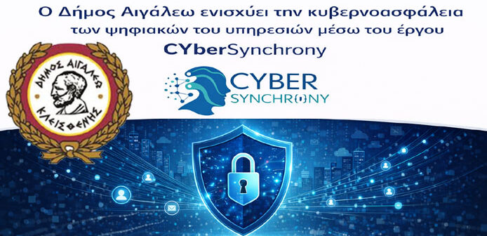 Ο Δήμος Αιγάλεω είναι μία από τις τρεις περιπτώσεις που μελετώνται στο πλαίσιο του ευρωπαϊκού ερευνητικού έργου CYberSynchrony, το οποίο στοχεύει στην ενίσχυση της κυβερνοασφάλειας στον δημόσιο τομέα.