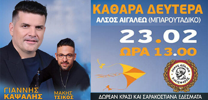 Δήμος Αιγάλεω: Γιορτάζουμε την Καθαρά Δευτέρα στο Άλσος Αιγάλεω με τον Γιάννη Καψάλη!