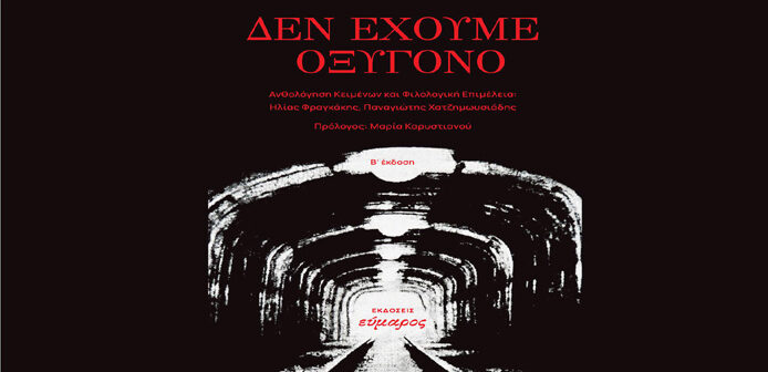 Το βιβλίο «Δεν έχουμε οξυγόνο» των εκδόσεων Εύμαρος παρουσιάζει ο Δήμος Χαλανδρίου το Σάββατο 28 Φεβρουαρίου, «μαύρη επέτειο» του σιδηροδρομικού δυστυχήματος στα Τέμπη, στις 19.00, στο Κέντρο Νεότητας (Δαναΐδων και Αντιγόνης).