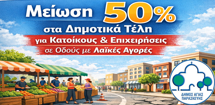 Αγία Παρασκευή: Μείωση 50% στα Δημοτικά Τέλη για Κατοίκους και Επιχειρήσεις σε Οδούς που λειτουργούν Λαϊκές Αγορές