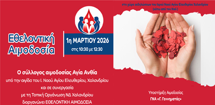 Εθελοντική Αιμοδοσία 1η Μαρτίου 2026 – Μια πράξη προσφοράς που μπορεί να σώσει ζωές