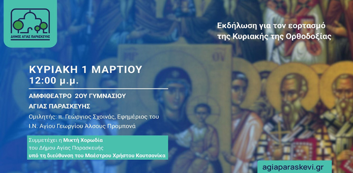 Δήμος Αγίας Παρασκευής: Εκδήλωση για τον εορτασμό της Κυριακής της Ορθοδοξίας