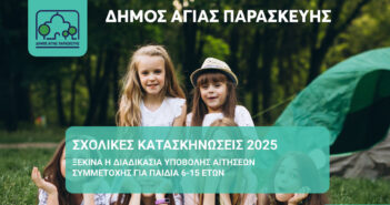 Ο Δήμος Αγίας Παρασκευής θα υλοποιήσει και φέτος το πρόγραμμα Παιδικών Κατασκηνώσεων στο οποίο προβλέπεται…
