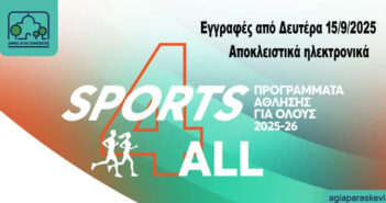 Ξεκινούν τη Δευτέρα 15 Σεπτεμβρίου τα «Sports 4 All – Προγράμματα Άθλησης για Όλους» του…