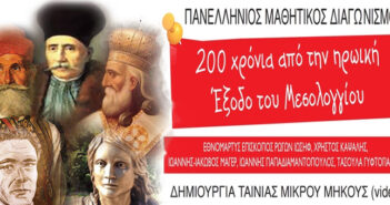 Πανελλήνιος Μαθητικός Διαγωνισμός δημιουργίας ταινίας μικρού μήκους με θέμα: «Η ηρωική έξοδος των Ελευθέρων Πολιορκημένων του Μεσολογγίου το 1826»