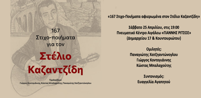 Δήμος Αιγάλεω: «167 Στιχο-Ποιήματα αφιερωμένα στον Στέλιο Καζαντζίδη»