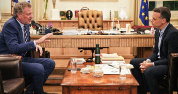 Ο Δήμαρχος Αθηναίων, Χάρης Δούκας, υποδέχθηκε στο Δημαρχιακό Μέγαρο τον επί οκτώ χρόνια Δήμαρχο Νέας Υόρκης, Bill de…