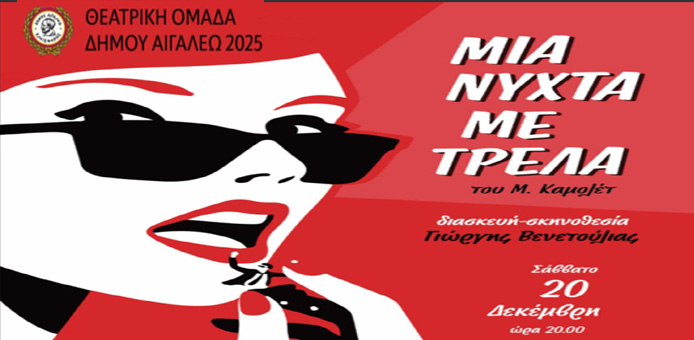 Δήμος Αιγάλεω: «Μια νύχτα γεμάτη τρέλα» η θεατρική παράσταση της Θεατρική Ομάδα του Δήμου