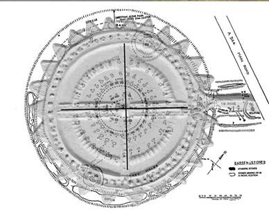 β) γενικüτερα το πλÞθος των χαρÜξεων29 και 30 στον εσωτερικü κýκλο του ΠαλαικÜστρου σχετßζονται με το πλÞθος των οπþν των δýο κýκλων Ζ´ (29) και Υ´ (30). Το πλÞθος αυτþν των οπþν η χαρÜξεων αντιστοιχοýν σε σεληνιακü μÞνα 29,5 ημερþν. Επιπρüσθετα μπορεß το πλÞθος των 59 χαρÜξεων του ΠαλαικÜστρου να ταυτιστεß και με τον κýκλο απü 59 μικρüτερες γαλαζüπετρες που ονομÜζεται (Κýκλος απü Γαλαζüπετρες) γýρω απü τα 5 τρßλιθα του Στüουνχετζ. γ) O εξωτερικüς τελικüς κýκλος που περιβÜλει üλο το Στüουνχετζ, με τις 57 οπÝς με üνομα κýκλος ¼μπρι (Aubrey Holes). Μπορεß να ταυτιστεß με τον εξωτερικü κýκλο του δßσκου του ΠαλαικÜστρου που Ýχει και αυτüς 58 οπÝς. δ) ΜÝσα απü τα τρßλιθα στο Στüουνχετζ υπÜρχουν 19 πÝτρες σε σχÞμα πÝταλου με üνομα (ΠÝταλο απü Γαλαζüπετρες), το ßδιο πλÞθος υπÜρχει και στο δßσκο του ΠαλαικÜστρου με μορφÞ μικρþν οπþν σε δýο περιοχÝς του εσωτερικοý σταυροý. «ΤελικÜ με βÜση τα περιγραφüμενα διαφαßνεται üτι ο Μινωικüς Πολιτισμüς θα πρÝπει να εßχε σχÝση και επαφÞ με τους υπερβορεßους, üπως αναφÝρει και ο Διþδορος ο Σικελιþτης», επισημαßνει ο κ. ΤσικριτσÞς και προσθÝτει üτι «αυτÜ που Ýχουμε βρει εßναι ελÜχιστα και προσωρινÜ αρχεßα των Μινωιτþν. Αποδεικνýεται üτι εßχαν πλοýσια γνþση σε τομεßς, üπως η Αστρονομßα και τα ΜαθηματικÜ. ¹ταν Ýνας Πολιτισμüς πολý προχωρημÝνος που εßχε φτÜσει σε διÜφορα μÝρη του τüτε κüσμου» |