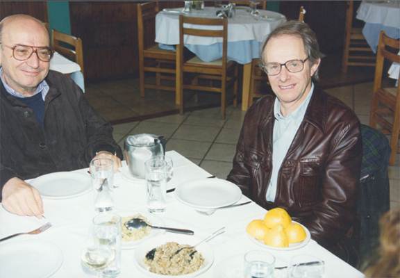Ο Θüδωρος Αγγελüπουλος με τον Marcello Mastroianni κατÜ τη διÜρκεια των γυρισμÜτων της ταινßας «Ο Μελισσοκüμος»