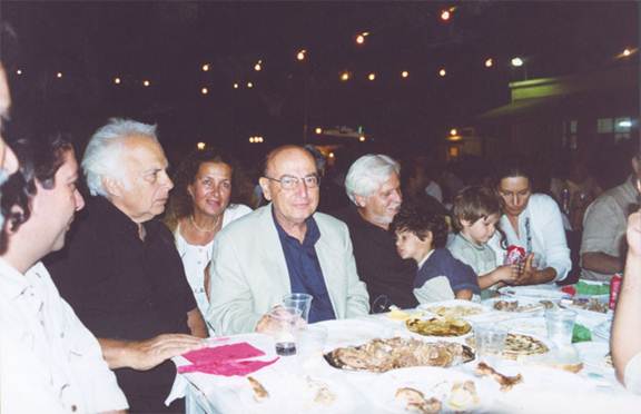 Ο Θüδωρος Αγγελüπουλος και η Φοßβη Οικονομοποýλου με το Νßκο Κοýνδουρο και τους συνεργÜτες του σε τιμητικÞ εκδÞλωση προς τιμÞν του, ¶γιος Νικüλαος ΚρÞτης, 2002