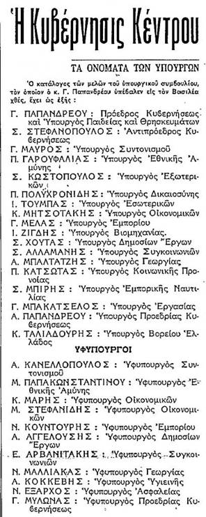 Και για όσους δεν είχαν πάρει χαμπάρι περί τίνος πρόκειται - σε ομιλία του προς τα μέλη του Συνδέσμου Ελλήνων Βιομηχάνων: «Δεν ημπορείτε, κύριοι, έστω και αν δεν σας αρέσει, να μας ανατρέψετε». Και πιο κάτω, προς τους ίδιους, τους οποίους παροτρύνει να δραστηριοποιηθούν, όπως ένας ιππέας ιππεύει ένα άλογο, διότι «από το άλογον πέφτει ο καβαλάρης. Πεζός δεν έπεσε κανείς ποτέ από το άλογον» (!)