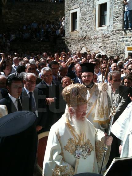 Τι είπε στο κήρυγμά του ο Οικουμενικός Πατριάρχης: "Ας είναι η Παναγία η Σουμελιώτισσα, η κυρία του Πόντου εγγυήτρια καλύτερων ημερών δια τους λαούς μας, οι οποίοι συναντώνται σήμερον εις το εδώ εορτάζον πανίερον σέβασμά της", ευχήθηκε ο Οικουμενικός Πατριάρχης Βαρθολομαίος κατά την ομιλία του στην ιστορική ιερά μονή. Το προσκύνημά μας αυτό, είπε ο Προκαθήμενος της Ορθοδοξίας, "είναι μια επιπλέον γέφυρα επικοινωνίας και εμπιστοσύνης ανάμεσα εις τους δύο λαούς". Σήμερα ζούμε ένα κορυφαίο θρησκευτικό και ιστορικό γεγονός, επεσήμανε σε άλλο σημείο της ομιλίας του ο κ. Βαρθολομαίος και πρόσθεσε: "Σήμερα ο Πόντος γίνεται πραγματικά Εύξεινος, καθώς δέχεται καραβάνια ολόκληρα προσκυνητών που γεμίζουν τις ανηφοριές των βουνών που οδηγούν στον ιερό βράχο της Παναγίας". Όλα αυτά τα 88 χρόνια - σημείωσε ο κ. Βαρθολομαίος- η ακοίμητος καντήλα της μνήμης και ευλάβειας προς τη Σουμελιώτισσα έκαιε και επότιζε και καθοδηγούσε την πορεία όλων των Ποντίων, όλων των Ρωμιών, όλων των ορθοδόξων που έλεγαν στην προσευχή τους "Σουμελά μας Παναγία, την εικόνα σου εγώ, τη σεπτή και την αγία έρθα για να προσκυνώ". Ο Οικουμενικός Πατριάρχης άρχισε την ομιλία του με τον στίχο του Αγίου Κοσμά του Μελωδού "Πανηγυριζέτωσαν οι θεόφρονες". Επεσήμανε ότι ο λόγος του ιερού υμνογράφου "προσλαμβάνει εφέτος δια τη μητέρα Εκκλησία της Κωνσταντινουπόλεως και τα ανά τον κόσμο τέκνα της, νέας διαστάσεις". Ύστερα από 88 έτη "ληθάργου και σιωπής κατόπιν της αδείας των εντίμων τοπικών αρχών της Τουρκίας, τας οποίας και επαινούμεν και ευχαριστούμεν", είπε ο κ. Βαρθολομαίος, "εις το παλλάδιον της ιστορικής ευλάβειας του Πόντου, όλης της Μικράς Ασίας, της Νοτίου Ρωσίας, της Ουκρανίας, εις την πανίερον αυτήν πατριαρχική μονή, ακούστηκε και πάλι, γλυκύτατον, το ``πεποικιλμένη τη θεία δόξη ιερά και ευκλεής παρθένε, μνήμην σου``". Ο Οικουμενικός Πατριάρχης τόνισε επίσης ότι σήμερα η Παναγία η Σουμελά κατέστη "κοινό σημείο αναφοράς όλων μας που ήρθαν εδώ εξ Ελλάδος, Ρωσίας, Ουκρανίας και από άλλες χώρες". Ολοκληρώνοντας την ομιλία του ο Πατριάρχης κάλεσε τους προσκυνητές, επιστρέφοντας στις πατρίδες τους, να κρατήσουν σαν αναμμένη πασχαλινή λαμπάδα τη "θεομητορική ελπίδα του Σουμελιώτικου Δεκαπενταύγουστου". Είναι η πρώτη μετά το 1922, Θεία Λειτουργία, προεξάρχοντος του Οικουμενικού Πατριάρχη Βαρθολομαίου. Οι πύλες της μονής άνοιξαν στις 7 το πρωί και πλήθος ορθοδόξων από την Ελλάδα, τη Ρωσία και άλλα μέρη πήραν το δρόμο για το χιλιοτραγουδισμένο μοναστήρι. Σε κάποια σημεία του μονοπατιού που οδηγεί στη μονή Πόντιοι με την παραδοσιακή λύρα υποδέχονται με τραγούδια τους προσκυνητές.Οι προσκυνητές όλοι κρατούν κεριά και έχουν μάτια δακρυσμένα. Οι τουρκικές αρχές έχουν λάβει αυστηρά μέτρα ασφαλείας ενώ μεγάλο είναι το ενδιαφέρον των τουρκικών και ξένων μέσων ΜΜΕ για να καλύψουν τη Θεία Λειτουργία. Πάνω από 5.000 πιστοί παρακολούθησαν τη λειτουργία. Μέσα στο μοναστήρι, πάντως, έχει επιτραπεί η είσοδος μόνο σε 500 διαπιστευμένους ταξιδιώτες.