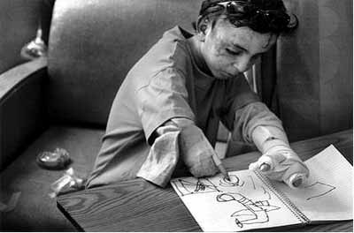 ΗΠΑ 2004 Ο μικρός Ιρακινός Saleh, ο οποίος έχει ακρωτηριαστεί από αμερικανική βόμβα στο Ιράκ, νοσηλεύεται σε νοσοκομείο του Όκλαντ, στην Καλιφόρνια, για να πραγματοποιηθούν διορθωτικές επεμβάσεις. Τα άλλα παιδιά, αρχίζουν να τον κοροϊδεύουν για την εμφάνισή του και ο μικρός αναστατώνεται. Οι νοσοκόμες για να τον ηρεμήσουν δένουν πάνω στο ακρωτηριασμένο του χέρι, ένα μολύβι. Ο μικρός Saleh τότε ζωγραφίζει ένα αεροπλάνο που ρίχνει βόμβες. Η φωτογραφία ελήφθη από την Deanne Fitzmaurice και τιμήθηκε με βραβείο Πούλιτζερ το 2005. |