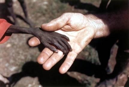 Απρίλιος 1980 Ένας ιεραπόστολος κρατά το σκελετωμένο χέρι ενός παιδιού που λιμοκτονεί στην Ουγκάντα.