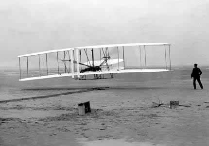 17 Δεκεμβρίου 1903 Οι αδερφοί Orville και Wilbur Wright κάνουν την πρώτη πτήση με μηχανοκίνητο αεροπλάνο.. Πιλότος ήταν ο Orville, αν και απλά έστριψαν νόμισμα για να το αποφασίσουν. Μετά την επιτυχία τους, και μέχρι να κατοχυρωθεί η πατέντα τους, έκρυψαν το αεροπλάνο στο μαγαζί τους που πουλούσε ποδήλατα για να μην τους κλέψει κανείς την ιδέα. |