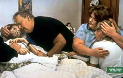 Μάιος 1990 Στο Πανεπιστημιακό νοσοκομείο του Οχάιο των ΗΠΑ, η Therese Frare αποτυπώνει στον φακό της τις τελευταίες στιγμές του ετοιμοθάνατου και προσβληθέντα από τον ιό του AIDS, ακτιβιστή David Kirby. Δίπλα του είναι ο πατέρας του, η αδερφή του και η ανιψιά του. Η φωτογραφία πρωτοδημοσιεύθηκε τον Νοέμβριο του 1990 στο περιοδικό Life, αλλά έγινε παγκοσμίως γνωστή όταν χρησιμοποιήθηκε σε διαφήμιση της Benetton το 1991 προκαλώντας σάλο. Η φωτογραφία τιμήθηκε στο World Press Photo Award το 1991. |