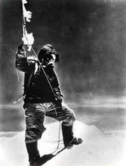 29 Μαΐου 1953 Ο 33χρονος Edmund Hillary και ο 37χρονος Sherpa (=οδηγός) Tenzing Norgay από το Νεπάλ, εφοδιασμένοι με μπουκάλες οξυγόνου, ανέβηκαν μόνοι οι δυο τους τα τελευταία μέτρα στην κορυφή του ύψους 8.848 μέτρων Τσομολούνγκμα (στην ντόπια διάλεκτο) του όρους Έβερεστ των Ιμαλαΐων, το οποίο μέχρι τότε είχε λυγίσει 15 τουλάχιστον αποστολές και είχε πάρει τις ζωές περισσοτέρων από 150 ορειβατών. Στη φωτογραφία απεικονίζεται ο Tenzing Norgay και τον αποθανάτισε ο Hillary, την στιγμή που πατούσε στη «Στέγη του κόσμου». |