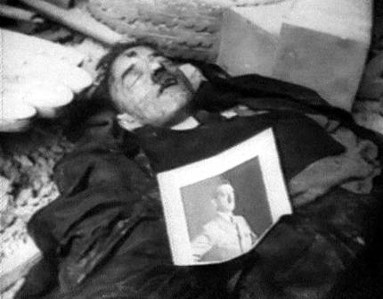 28 Απριλίου 1945 Λίγο πριν την είσοδο των συμμαχικών στρατευμάτων στο Μιλάνο στις 27 Απριλίου, και ενώ ο Μουσολίνι κατευθυνόταν στην πόλη Chiavenna μαζί με την ερωμένη του Κλαρέττα Πετάτσι (Claretta Petacci) με σκοπό τη διαφυγή τους στην Ελβετία, συνελήφθησαν από Ιταλούς παρτιζάνους. Την επόμενη μέρα δικάστηκαν με συνοπτικές διαδικασίες και εκτελέστηκαν μαζί με 16 ακόμη άτομα, τα περισσότερα μέλη της κυβέρνησης του Σαλό ενώ τα πτώματά τους κρεμάστηκαν ανάποδα στην κεντρική πλατεία Λορέτο (Piazzale Loreto) του Μιλάνου.
