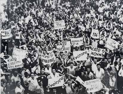 17 Νοέμβρη 1973 Εξέγερση των φοιτητών του Πολυτεχνείου, της νεολαίας και ολόκληρου του ελληνικού λαού κατά της χουντικής τυραννίας, το Νοέμβριο του 1973. Το Πολυτεχνείο ήταν η κορυφαία εκδήλωση της επτάχρονης αντιχουντικής πάλης και μία από τις κορυφαίες στιγμές των αγώνων του λαού και της νεολαίας. |