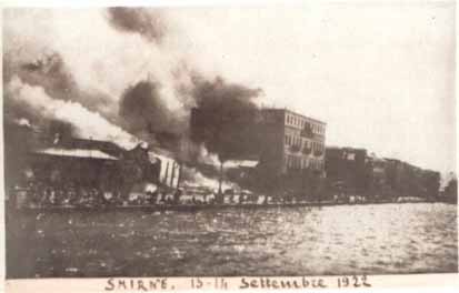 8-18 Σεπτεμβρίου 1922 Στις 8 Σεπτεμβρίου του 1922 , οι Τούρκοι μπήκαν στη Σμύρνη και στις 18 του ίδιου μήνα ολοκληρώνεται η εκκένωση της Μ. Ασίας από τα ελληνικά στρατεύματα. Με τη Σμύρνη στις φλόγες και την απελπισμένη προσπάθεια του μαρτυρικού πληθυσμού της να σωθεί, καταφεύγοντας στα συμμαχικά καράβια, γράφεται η μελανότερη σελίδα της ελληνικής ιστορίας |