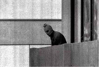 5 Σεπτεμβρίου, 1972 Το πρωί της 5ης Σεπτεμβρίου 1972, κατά την διάρκεια των Ολυμπιακών Αγώνων του Μονάχου, ένας κομάντο της παλαιστινιακής στρατιωτικής οργάνωσης «Μαύρος Σεπτέμβρης», εισβάλλει στο Ολυμπιακό χωριό και κρατά 11 Ισραηλινούς αθλητές σε ομηρία, με αντάλλαγμα την απελευθέρωση 200 φυλακισμένων Παλαιστινίων. Δύο Ισραηλινοί αθλητές θα εκτελεστούν. Το βράδυ, ένα δράμα εξελίσσεται στο αεροδρόμιο του Μονάχου όπου οι τρομοκράτες προσπαθούν να διαφύγουν με τους ομήρους για το Κάιρο. Με την επέμβαση της γερμανικής αστυνομίας σκοτώνονται οι 9 Ισραηλινοί όμηροι, καθώς και τα 5 από τα 8 μέλη της οργάνωσης. Το σύνολο των θυμάτων ανεβαίνει στους 18. Στην φωτογραφία από το μπαλκόνι των διαμερισμάτων της ισραηλινής ομάδας, πιθανολογείται ότι είναι το νεαρότερο μέλος της οργάνωσης, ο Afif Ahmed Hamid, ο οποίος βρέθηκε αργότερα ανάμεσα στους νεκρούς Παλαιστίνιους. |