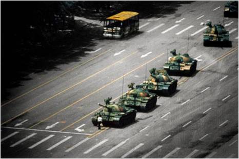 Πλατεία Tiananmen 1989 Γνωστός σαν τον Άγνωστο Επαναστάτη, αυτό ήταν το παρωνύμιο που αποδόθηκε σε έναν ανώνυμο άνδρα που έγινε διεθνώς διάσημος φωτογραφιζόμενος μπροστά σε μια σειρά από τάνκς κατά τη διάρκεια της καθιστικής επανάστασης στην πλατεία Tiananmen το 1989 στη Λαϊκή Δημοκρατία της Κίνας. Η φωτογραφία λήφθηκε από τον Jeff Widener, και εκείνη την ίδια νύχτα μπήκε στον τίτλο εκατοντάδων εφημερίδων και περιοδικών παγκοσμίως. Ο άνδρας έμεινε ακίνητος και όρθιος ενώ τα τανκς ήρθαν κοντά του, κρατάει δύο παρόμοιες τσάντες μια σε κάθε χέρι. Ενώ τα τανκς πλησίασαν σε παράταξη, έκανε χειρονομίες έτσι ώστε απομακρύνθηκαν. |