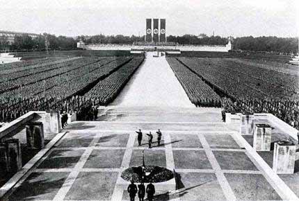 Γερμανία 1934 Το εντυπωσιακό συνέδριο των Ναζί στην Νυρεμβέργη. Διακρίνονται από αριστερά προς τα δεξιά, οι Heinrich Himmler, Adolf Hitler & Viktor Lutze. |