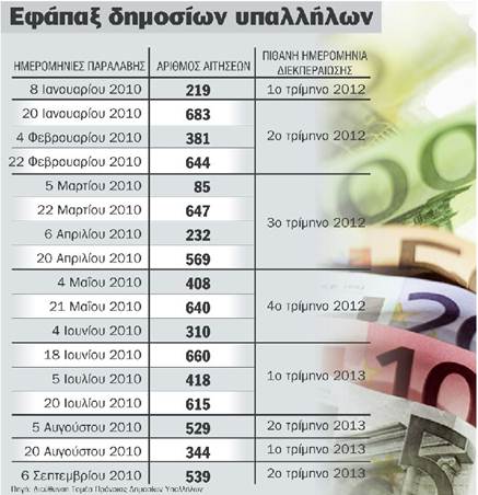 Η κατÜσταση με το εφÜπαξ στο Δημüσιο εßναι τραγικÞ και δεκÜδες δημüσιοι υπÜλληλοι καθημερινÜ πολιορκοýν τα γραφεßα του ΤΠΔΥ (Σταδßου 31) και πιÝζουν το ταμεßο, χωρßς αποτÝλεσμα, για την üσο πιο γρÞγορη καταβολÞ της εφÜπαξ αποζημßωσης.