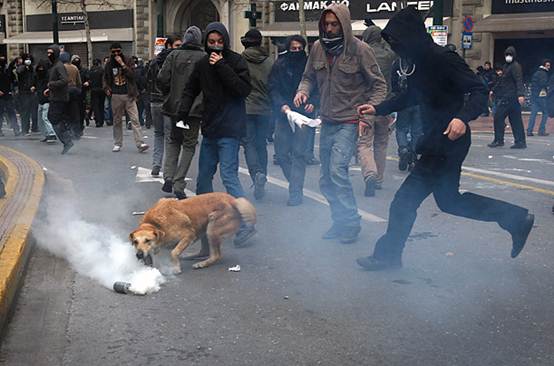 Αυτοß εßναι κÜποιοι απü τους χαρακτηρισμοýς που χρησιμοποιεß το περιοδικü Time για να συστÞσει στο αναγνωστικü του κοινü τον... ΛουκÜνικο, τον γνωστü αδÝσποτο σκýλο που Ýχει πολλÝς φορÝς φωτογραφηθεß τα τελευταßα χρüνια να συμμετÝχει ενεργÜ σε διαδηλþσεις και επεισüδια στο κÝντρο της ΑθÞνας. «Εßναι μßα διεθνÞς διασημüτητα. Αυτüς ο σκýλος μπαßνει στις γραμμÝς των ταραχοποιþν στην πρωτεýουσα της ΕλλÜδας» γρÜφει για τον ΛουκÜνικο το Time. Και δημοσιεýει μια σειρÜ απü φωτογραφßες, ελλÞνων και ξÝνων φωτορεπüρτερ, κυρßως απü διαδηλþσεις και επεισüδια στην ευρýτερη περιοχÞ της πλατεßας ΣυντÜγματος. Η αλÞθεια εßναι üτι ο ΛουκÜνικος εßναι γÝννημα θρÝμμα Εξαρχειþτης. ΓεννÞθηκε και μεγÜλωσε στο τρßγωνο Μεσολογγßου, Ναβαρßνου, ΧαριλÜου Τρικοýπη και ανατρÜφηκε με χÜδια και ωραßες μουσικÝς απü τα μπαρÜκια της περιοχÞς. Το Üστρο του Üρχισε να ανατÝλλει το 2008 üταν ο ΛουκÜνικος Ýδειξε üτι εßναι γεννημÝνος για μεγÜλους και δýσκολους αγþνες συνεχßζοντας την παρÜδοση, την ιστορßα που Ýγραψε ο μακαρßτης ΚανÝλλος. Δε χÜνει καμιÜ πορεßα και καμιÜ εκδÞλωση διαμαρτυρßας. ΑντιλαμβÜνεται αμÝσως τον «εχθρü» και τον αντιμετωπßζει με γαυγßσματα στη διαπασþν. Ο ΛουκÜνικος εßναι η προσωποποßηση της παροιμßας «σκýλος που γαυγßζει δεν δαγκþνει» αφοý φυλÜει τα δüντια του μüνον για την αγαπημÝνη του λιχουδιÜ τα λουκÜνικα, γι’ αυτü πÞρε και αυτü το üνομα. ¸τσι λοιπüν ο ΛουκÜνικος ßσως εßναι τις τελευταßες μÝρες ο πιο διÜσημος σκýλος του κüσμου λüγω της συμμετοχÞς του σε üλες τις διαδηλþσεις στην ΑθÞνα και τα δημοσιεýματα για το… Üτομü του που Ýκαναν τον γýρο του πλανÞτη. Εßναι χαρακτηριστικü üτι ο Αμερικανüς τραγουδοποιüς David Rovics, εμπνεýστηκε απü τον τετρÜποδο «αγωνιστÞ» και το αποτÝλεσμα εßναι το τραγοýδι "Riot Dog". Απü τον ΚανÝλλο στον ΛουκÜνικο! Σε üτι αφορÜ τους σκýλους Τσε ΓκεβÜρα θα πρÝπει να παραδεχτοýμε üτι την αρχÞ Ýκανε Ýνας Üλλος σκýλος ο ΚανÝλλος. Αυτüς Þταν ο σκýλος- μασκüτ του Πολυτεχνεßου μιας και Þταν πÜντα στην πρþτη γραμμÞ συνοδεýοντας τους φοιτητÝς σε κÜθε μεγÜλη πορεßα στο κÝντρο της ΑθÞνας. Ο ΚανÝλλος δεν Þταν αδÝσποτος üπως τον αποκαλοýσαν πολλοß, αφοý εßχε σπßτι. Ζοýσε μεταξý ΕΜΠ και Εξαρχεßων, üπου οι φοιτητÝς, οι καταστηματÜρχες και οι κÜτοικοι τον φρüντιζαν σαν να Þταν δικüς τους. Πρþτος στις πορεßες, διÜλεγε πÜντα την πλευρÜ των αντιεξουσιαστþν και Ýδειχνε με κÜθε τρüπο στα ΜΑΤ üτι δεν τον τρομÜζουν οýτε τα γκλüμπς, οýτε τα χημικÜ τους! Ο ΚανÝλλος, πρωτοεμφανßστηκε στην οδü Πατησßων, την δεκαετßα του ’90 και εκεß γýρω στο 2007, Üρχισε να δεßχνει τα πρþτα σημÜδια των γηρατειþν και της κοýρασης! ¼ταν μÜλιστα κÜποιοι αποφÜσισαν να τον μεταφÝρουν σε κυνοκομεßο στο Μαρκüπουλο, περισσüτερα απü διακüσια Üτομα συγκÝντρωσαν υπογραφÝς και κατÜφεραν να επιστρÝψει ο 17χρονος πια σκýλος- αγωνιστÞς, στο διαμÝρισμα ενüς φοιτητÞ που ανÝλαβε να τον φροντßζει! Εκεß, Üφησε και την τελευταßα του πνοÞ, το καλοκαßρι του 2008. Στο μεταξý εßχε προλÜβει να περÜσει στην αιωνιüτητα μÝσα απü το τραγοýδι του ΣτÜθη Δρογþση.