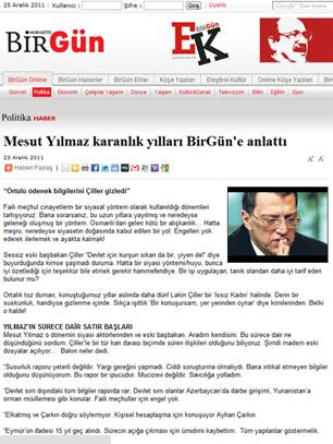 Σε δηλþσεις του στην τουρκικÞ εφημερßδα Βirgun, ο ΓιλμÜζ κÜνει λüγο για κονδýλια που δüθηκαν τüτε þστε να προκληθεß αποσταθεροποßηση με πραξικüπημα κατÜ του προÝδρου Αλßγιεφ του ΑζερμπαúτζÜν και πυρκαγιÝς σε ελληνικÜ δÜση. Μüλις üμως ξεσηκþθηκε σÜλος στη χþρα μας ο πρþην πρωθυπουργüς ανασκεýασε τις δηλþσεις του υποστηρßζοντας üτι η συνÝντευξη του στην εφημερßδα Birgun παρερμηνεýθηκε. ¼μως o δημοσιογρÜφος ENVER AYSEVER που πÞρε την πολýκροτη συνÝντευξη επιμÝνει στην εγκυρüτητα του ρεπορτÜζ. «¼τι Ýγραψα δημοσιεýθηκε. ΠÝραν αυτοý ο ΓιλμÜζ με τις δηλþσεις του δεν διαψεýδει την εßδηση. Εγþ Ýγραψα üτι εßπε. Σε ποιον μπορεß να γßνουν αντßποινα; Σε κÜποιον ο οποßος σου Ýκανε κÜτι. Δεν διαστρÝβλωσα οýτε λÝξη», εßπε ο δημοσιογρÜφος και πρüσθεσε: «Δεν χρησιμοποßησα μηχÜνημα καταγραφÞς, üτι Üκουσα αυτü και Ýγραψα. Εßναι βÝβαιο üτι δεν μιλοýσε για δÜση στην Τουρκßα. Στην συζÞτηση που εßχαμε δεν πÝρασε η λÝξη Τουρκßα. Εκεßνο που εßπε Þταν “αντßποινα δασþν στην ΕλλÜδα”. Εμεßς αυτü το εßχαμε βÜλει την ΠαρασκευÞ. ¼μως θÝμα προÝκυψε üταν ενεπλÜκη στην ιστορßα ο ελληνικüς τýπος». Τα λüγια του üτι οι πυρκαγιÝς στα δÜση στην ΕλλÜδα Þταν αντßποινα ξεσÞκωσαν την ΕλλÜδα η οποßα ζÞτησε αποζημßωση. Ενþ ο ΓιλμÜζ εßπε üτι παρεξηγÞθηκε ο δημοσιογρÜφος ΑúσεβÝρ εßπε üτι εßναι απολýτως βÝβαιος για τα üσα εßπε ο ΓιλμÜζ.