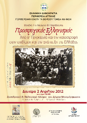 Το θÝμα τη;ς εκδÞλωσης εßναι: «Προσφυγικüς Ελληνισμüς: Απü τη Γενοκτονßα και την καταστροφÞ στην επιβßωση και την ανÜπτυξη της ΕλλÜδος». Η εßσοδος εßναι δωρεÜν. Σπουδαßοι καλλιτÝχνες του ποντιακοý και μικρασιατικοý χþρου θα τιμÞσουν την εκδÞλωση με την παρουσßα τους. ΠαρουσιαστÞς της εκδÞλωσης θα εßναι ο καταξιωμÝνος ηθοποιüς ΛÜζος ΤερζÜς. Στην εκδÞλωση αυτÞ: