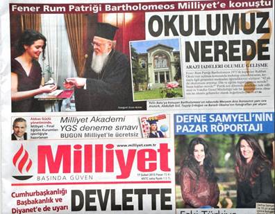 O Οικουμενικüς ΠατριÜρχης δεν παρÝλειψε να συγχαρεß και την δημοσιογρÜφο Pelin Batu για την προετοιμασßα, μαζß με τον Nezih Basgelen, εμπεριστατωμÝνου αφιερþματος στα γεγονüτα της 6ης-7ης Σεπτεμβρßου 1955 που δημοσιεýτηκε στην Milliyet σε Ýξι συνÝχειες και ολοκληρþθηκε την ΠαρασκευÞ, στo οποßo φιλοξενοýνται τεκμηριωμÝνες περιγραφÝς των γεγονüτων, αναφορÝς και σχüλια ακαδημαúκþν, διπλωματþν και διευθυντþν σýνταξης εφημερßδων εκεßνης της εποχÞς. ¼λα οδηγοýν σε Ýνα συμπÝρασμα, üπως το διετýπωσε ο συγγραφÝας Yilmaz Karakoyunlu: «Τα γεγονüτα της 6ης-7ης Σεπτεμβρßου 1955 Þταν μßα μεθüδευση του βαθÝoς κρÜτους...» |