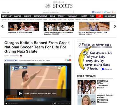 ΠρωτοσÝλιδο και στη Huffigton Post ο ναζιστικüς χαιρετισμüς του Κατßδη