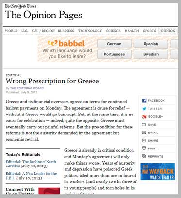 New York Times: Ôï ÄÍÔ óõíåéäçôïðïéåß üôé ç ëéôüôçôá êÜíåé æçìéÜ óôçí ÅëëÜäá |