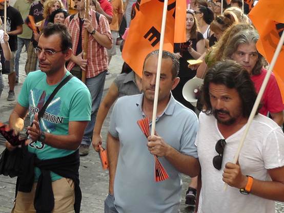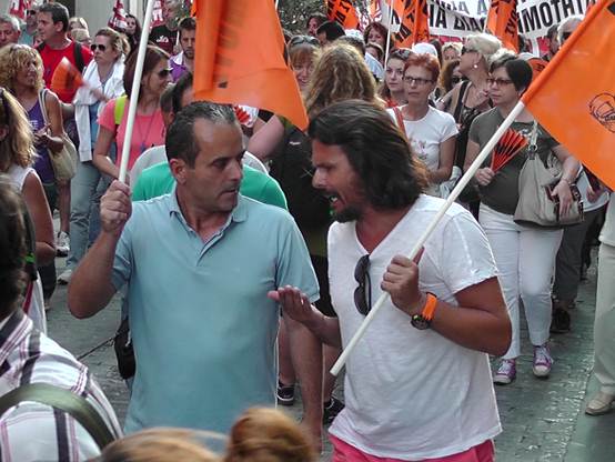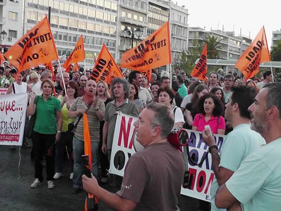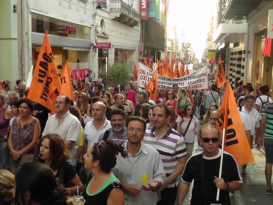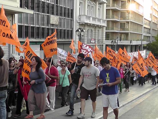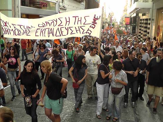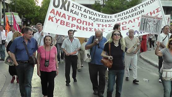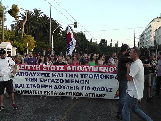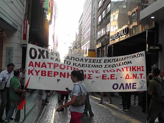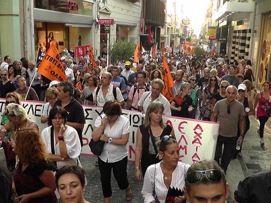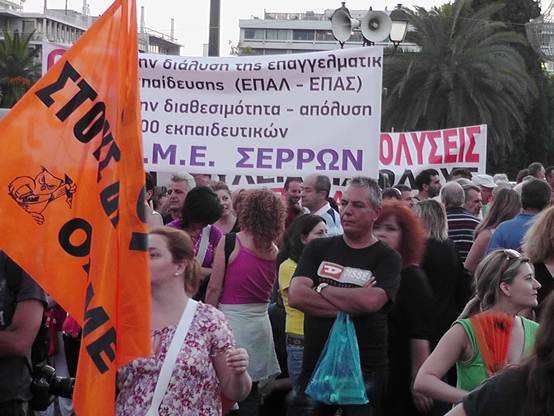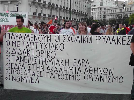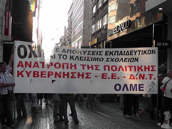 Με μια πρþτη εκτßμηση εßναι üτι ο σημερινüς κüσμος εßναι πολý περισσüτερος απü τον χθεσινü και οι διαδηλωτÝς ξεπερνοýσαν τις 4.000 Η πορεßα των καθηγητþν της ΟΛΜΕ που ξεκßνησε απü τα γραφεßα της και ανεβαßνοντας την Ερμοý μÝσω ¼θωνος Ýφτασε στο Σýνταγμα üπου συνÜντησε και του Σχολικοýς φýλακες, μÝλη της ΠΟΕ-ΟΤΑ με τους δημοτικοýς αστυνομικοýς, καθþς και Ýνα μπλοκ με μÝλη του ΠΑΜΕ να δßνουν δυναμικü «παρþν». Εκεßνο που μας Ýκανε εντýπωση απü τη συγκεκριμÝνη κινητοποßηση Þταν η απουσßα και των εκπαιδευτικþν των Γυμνασßων & Γενικþν Λυκεßων, αλλÜ και των εκπαιδευτικþν της ΠρωτοβÜθμιας εκπαßδευσης. Ελπßζουμε üτι η αßτια δεν Þταν η προσωρινÞ εργασιακÞ ασφÜλεια που νιþθουν, γιατß πρÝπει να γßνει απü üλους μας αντιληπτü αυτü που λÝει ο λαüς μας. «Αν καßγεται το σπßτι του γεßτονÜ σου μξη χαßρεσαι, γιατß ακολουθεß και το δικü σου!» Οι συγκεντρωμÝνοι απαιτοýσαν απü του βουλευτÝς του Ελληνικοý Κοινοβουλßου να μην υπερψηφßσουν το πολυνομοσχÝδιο με το οποßο τßθενται σε διαθεσιμüτητα κÜτι που δεν αποφεýχθηκε μιας και το πολυνομοσχÝδιο υπερψηφßστηκε με 153 ναι και τßθεται πλÝον σε εφαρμογÞ.