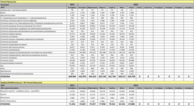 Το υπουργεßο ΔιοικητικÞς Μεταρρýθμισης εγκαινßασε τον νÝο δικτυακü τüπο της κυβÝρνησης http://apografi.yap.gov.gr/apografi/default.asp, üπου καταγρÜφεται αναλυτικÜ ο αριθμüς των δημοσßων υπαλλÞλων καθþς και ο αριθμüς των υπαλλÞλων που βρßσκονται σε καθεστþς διαθεσιμüτητας, κινητικüτητας, πειθαρχικÞς δßωξης, Þ Ýχει αποχωρÞσει, ανÜ μÞνα. ¼πως αναφÝρει και η ΚΑΘΗΜΕΡΙΝΗ οι εκπαιδευτικοß εßναι οι περισσüτεροι, ενþ ο συνολικüς πληθυσμüς των δημüσιων υπαλλÞλων μειþνεται σταθερÜ τους τελευταßους μÞνες, φθÜνοντας τον περασμÝνο Ιοýνιο στους 618.709. ΕÜν üμως, υπολογισθοýν οι αποχωρÞσεις μÝσα στον Ιοýλιο, ο τελικüς αριθμüς Ýφθασε χθες τις 614.053. Τι Ýδειξαν οι αριθμοß • ΚατÜ 14.937 Üτομα Ýχει μειωθεß ο αριθμüς των δημοσßων υπαλλÞλων μÝσα στο πρþτο εξÜμηνο του 2013. Τον ΔεκÝμβριο του 2012 Þταν 628.990 υπÜλληλοι και τον Ιοýλιο του 2013 Ýπεσαν στους 614.053. Η μεßωση μÝσα στον Ιοýλιο εßναι η μεγαλýτερη αριθμητικÜ και ποσοστιαßα, σε μηνιαßα βÜση, το 2013. • Απü τους 618.709 δημοσßους υπαλλÞλους, οι 184.292 ανÞκουν στο υπουργεßο Παιδεßας, ΘρησκευμÜτων και Αθλητισμοý, ενþ στους υπαλλÞλους του μετρÞθηκαν και εκεßνοι του υπ. Πολιτισμοý που αυτονομÞθηκε μετÜ τον ανασχηματισμü. Εξ αυτþν η συντριπτικÞ πλειονüτητα εßναι καθηγητÝς σε σχολεßα Þ σε διοικητικÝς θÝσεις. Στον αντßποδα, μüλις 97 δημüσιοι υπÜλληλοι εργÜζονται σε κυβερνητικοýς-πολιτειακοýς φορεßς. • Τα υπουργεßα και οι δημüσιοι φορεßς Ýχουν τη μερßδια του λÝοντος (513.041 υπÜλληλοι) και ακολουθοýν οι ΟΤΑ με 92.596 υπαλλÞλους. • Οι περισσüτεροι (231.608 στους 614.053) εßναι μεταξý 40 και 49 ετþν, ενþ υπερτεροýν οι Üνδρες των γυναικþν (328.185 Ýναντι 285.868). • Οι 249.085, δηλαδÞ οι τÝσσερις στους δÝκα (ακριβÝς ποσοστü 40,5%), Ýχουν πανεπιστημιακÞ εκπαßδευση, ενþ οι 216.579 (35,2%) εßναι απüφοιτοι Γυμνασßου Þ Λυκεßου. • ΥπÜρχει ανισομερÞς κατανομÞ του προσωπικοý σε κÜθε φορÝα, με βÜση το επßπεδο εκπαßδευσης. Ετσι στα υπουργεßα και στους δημüσιους φορεßς υπερτεροýν οι υπÜλληλοι πανεπιστημιακÞς και τεχνολογικÞς εκπαßδευσης (οι 276.510 απü τους 513.041). • Στον αντßποδα οι δýο στους τρεις εργαζüμενους στους ΟΤΑ εßναι απüφοιτοι Γυμνασßου Þ Λυκεßου. ΣυγκεκριμÝνα, οι 61.394 απü τους 92.596 (ακριβÝς ποσοστü 66,3%)