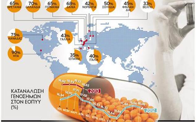 ΕΥΡΩΠΑÚΚΗ ΜΕΛΕΤΗ - ΜεγÜλη εξοικονüμηση πüρων Σε Üμεση μεßωση της φαρμακευτικÞς δαπÜνης οδηγεß η κυκλοφορßα γενοσÞμων στην αγορÜ. ΜελÝτη της ΕΕ Ýδειξε üτι δýο χρüνια μετÜ την εßσοδü τους στην αγορÜ, οι τιμÝς τους Þταν κατÜ μÝσον üρο 40% χαμηλüτερες απü τις τιμÝς των προηγοýμενων πρωτüτυπων σκευασμÜτων. Το μερßδιο αγορÜς των εταιρειþν παραγωγÞς γενοσÞμων Þταν 30% στο τÝλος του πρþτου Ýτους και 45% μετÜ απü δýο Ýτη. Στις αγορÝς στις οποßες διατßθενται γενüσημα, η μÝση εξοικονüμηση για το σýστημα Υγεßας φτÜνει σχεδüν το 20% Ýναν χρüνο μετÜ τη λÞξη του δικαιþματος αποκλειστικÞς εκμετÜλλευσης. ΕνδιαφÝρον παρουσιÜζει η μελÝτη για το κüστος φαρμÜκων, τα οποßα Ýχασαν την αποκλειστικüτητÜ τους την περßοδο 2000?2007, σε 17 χþρες μÝλη της ΕΕ. Τα συγκεκριμÝνα φÜρμακα κüστισαν στα εθνικÜ συστÞματα 50 δισ. ευρþ, ποσü το οποßο θα εßχε φτÜσει στα 64 δισ. εÜν δεν εßχε μεσολαβÞσει η εßσοδος των γενοσÞμων., ΔΗΜΗΤΡΗΣ ΚΑΡΑΓΙΩΡΓΟΣ