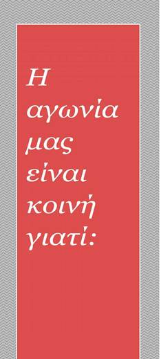 ΑπÝναντι σε αυτÞ τη βÜρβαρη πραγματικüτητα, απÝναντι σε üλους αυτοýς που προσπαθοýν να μας πεßσουν πως üλοι οι αγþνες εßναι μÜταιοι και πως πρÝπει πειθαρχημÝνα και Üβουλα να υποταχθοýμε στην αναλγησßα των ισχυρþν, ορθþνουμε το ανÜστημÜ μας ως οφειλüμενο χρÝος στη νÝα γενιÜ που διαπαιδαγωγοýμε.