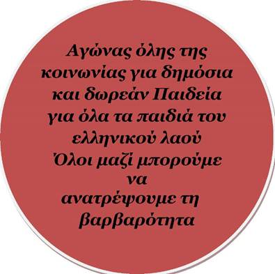 Εμεßς οι εκπαιδευτικοß των παιδιþν σας με την Ýναρξη της σχολικÞς χρονιÜς νιþθουμε την ανÜγκη να επικοινωνÞσουμε μαζß σας και να μοιραστοýμε την αγωνßα μας για τη Δημüσια και ΔωρεÜν εκπαßδευση που καθημερινÜ βρßσκεται στο στüχαστρο βßαιων περικοπþν, συρρßκνωσης, υποβÜθμισης και απαξßωσης. Δυστυχþς, βιþνουμε πρωτοφανεßς καταστÜσεις στη δυσκολüτερη χρονιÜ μεταπολιτευτικÜ. Οι Üδικες μνημονιακÝς πολιτικÝς της ισοπÝδωσης και της αναλγησßας κατακερματßζουν üτι κερδÞθηκε με σκληροýς αγþνες τα τελευταßα 100χρüνια. Το ζεßτε εσεßς οι ßδιοι καθημερινÜ. Οι μισθοß Ýχουν μεταβληθεß σε προνοιακÜ επιδüματα, γýρω μας υπÜρχουν 1,5 εκατομμýριο Üνεργοι, η ακρßβεια καλπÜζει ανεξÝλεγκτα, το ßδιο και η κερδοσκοπßα. Στον ιδιωτικü τομÝα κυριαρχοýν οι αυθαιρεσßες του εργοδüτη και στο δημüσιο υπÜρχουν απολýσεις και τερÜστιο κýμα φυγÞς. Η κοινωνικÞ συνοχÞ ολοÝνα και χÜνεται. Στρεφüμαστε ο Ýνας ενÜντια στον Üλλο αντß ν' αγωνιζüμαστε üλοι μαζß. Ακüμα και η εκπαßδευση, που üλοι οι «υπεýθυνοι» δεσμεýονταν üτι δε θα γßνει θýμα των περικοπþν, κυριολεκτικÜ Ýχει εγκαταλειφθεß στην τýχη της. Εßναι η πρþτη φορÜ στη μεταπολεμικÞ ΕλλÜδα που δεν πραγματοποιÞθηκε οýτε Ýνας μüνιμος διορισμüς στην ΠρωτοβÜθμια Εκπαßδευση ενþ συνταξιοδοτÞθηκαν δυο χιλιÜδες (2.000) εκπαιδευτικοß. Οχτþ χιλιÜδες (8.000) συνÜδελφοß μας αναπληρωτÝς που εργÜστηκαν πÝρσι θα προστεθοýν στις ουρÝς της ανεργßας. Σκεφτεßτε τον αντßκτυπο των παραπÜνω στην ποιüτητα της εκπαßδευσης. Αντß τα παιδιÜ μας να γßνονται λιγüτερα στις τÜξεις και να αυξÜνεται η ποιüτητα του μαθÞματος γßνονται πιο πολλÜ με üλα τα προβλÞματα που αυτü συνεπÜγεται. Τα πολυπληθÞ τμÞματα θα εßναι πλÝον ο κανüνας και üχι η εξαßρεση. Η σχολικÞ χρονιÜ ξεκινÜ με τερÜστιες ελλεßψεις σε προσωπικü και αμÝτρητες þρες μαθημÜτων χÜνονται. Ο θεσμüς του ΟλοÞμερου Σχολεßου οδηγεßται στην απüλυτη απαξßωση. Οι δÜσκαλοι, που εßναι απαραßτητοι για τη μελÝτη και προετοιμασßα των μαθητþν, μετακινοýνται στο πρωινü πρüγραμμα για να γßνει εξοικονüμηση προσωπικοý. Το τι αντικεßμενα θα διδÜσκονται τα παιδιÜ στο ολοÞμερο δεν εξαρτÜται απü το τι Ýχουν ανÜγκη, αλλÜ απü το ποιοι εκπαιδευτικοß «περισσεýουν». Μπορεß φÝτος η πολιτεßα να πÝτυχε(!) να στεßλει τα σχολικÜ βιβλßα Ýγκαιρα στις τÜξεις - üπως συμβαßνει σε κÜθε χþρα του πολιτισμÝνου κüσμου - αλλÜ μια σειρÜ Üλλων προβλημÜτων με κυρßαρχο την υποχρηματοδüτηση των σχολεßων, την Ýλλειψη υποστηρικτικþν δομþν (ενισχυτικÞ διδασκαλßα, τÜξεις υποδοχÞς), την υπολειτουργßα των Ειδικþν Σχολεßων αλλÜ και τις ελλεßψεις στο βοηθητικü προσωπικü (απουσßα καθαριστριþν, σχολικþν φυλÜκων και τροχονüμων) βÜζουν εμπüδια στην ομαλÞ Ýναρξη και λειτουργßα των σχολεßων.