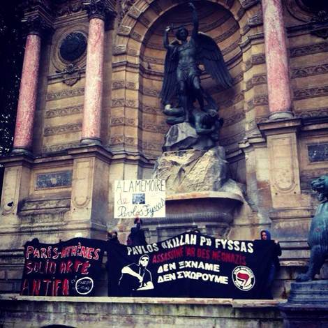 ΔιεθνÞ αγανÜκτηση Ýχει προκαλÝσει η δολοφονßα του Παýλου Φýσσα απü τον χρυσαυγßτη δολοφüνο Γιþργο ΡουπακιÜ, με αντιδρÜσεις και συγκεντρþσεις να Ýχουν πραγματοποιηθεß Þδη σε üλη την Ευρþπη και δεκÜδες Üλλες να Ýχουν προγραμματιστεß. Η κατακραυγÞ εναντßον της ΧρυσÞς ΑυγÞς εßναι Ýντονη, με ΓÜλλους διαδηλωτÝς απü το Παρßσι και την Μασσαλßα, με Ιταλοýς διαδηλωτÝς απü την Ρþμη, την ΝÜπολη και το ΜιλÜνο, με διαδηλωτÝς απü την Γερμανßα, την Σουηδßα, την Ολλανδßα και την Πολωνßα και την Ισπανßα να στÝλνουν Ýνα ξεκÜθαρο μÞνυμα κατÜ του νεοναζισμοý. Οι αντιδρÜσεις στη Γαλλßα: Παρßσι